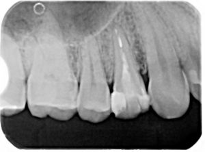 根の先まで歯髄(神経・血管)は除去されているようだし悪いところは無さそうですが歯髄(神経・血管)の取り残しがあると想像しました。
