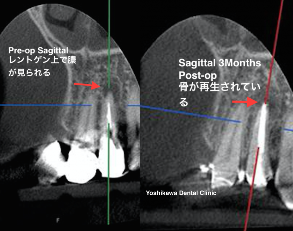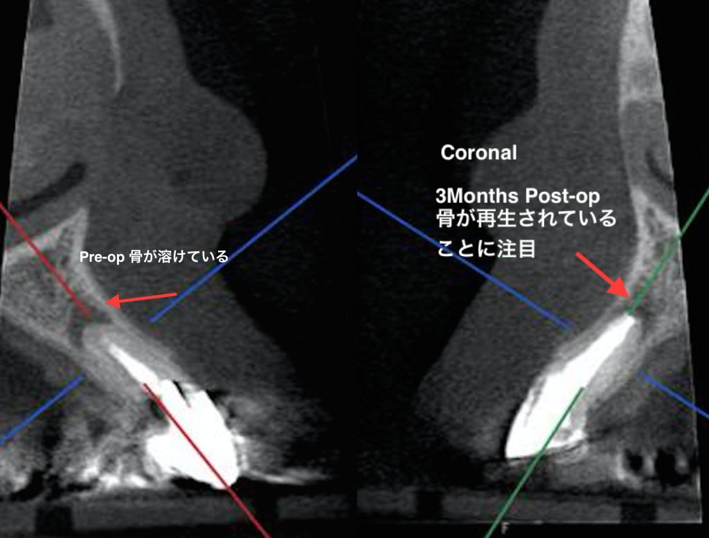 次のレントゲンは根管治療後、約3ヶ月後のCT像です。