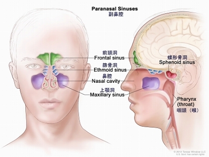 副鼻腔とは鼻腔に交通している上顎洞、篩骨洞、前頭洞の3つの空洞を指します。