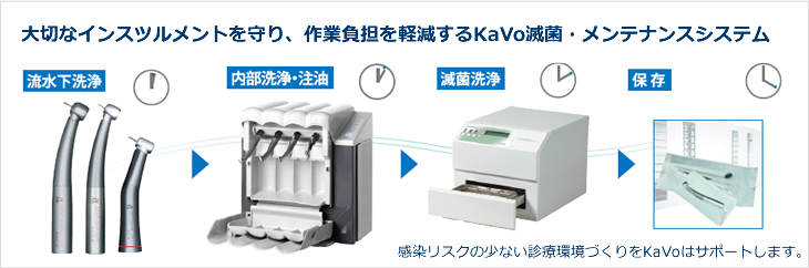 ドリルの柄、ハンドピースは患者ごと に交換し,使用後は内外面を洗浄,専用オイルによる洗 浄注油後、高圧蒸気滅菌が必要であります。ハンドピース内 部まで、洗浄・滅菌可能な機器が適切であります。
